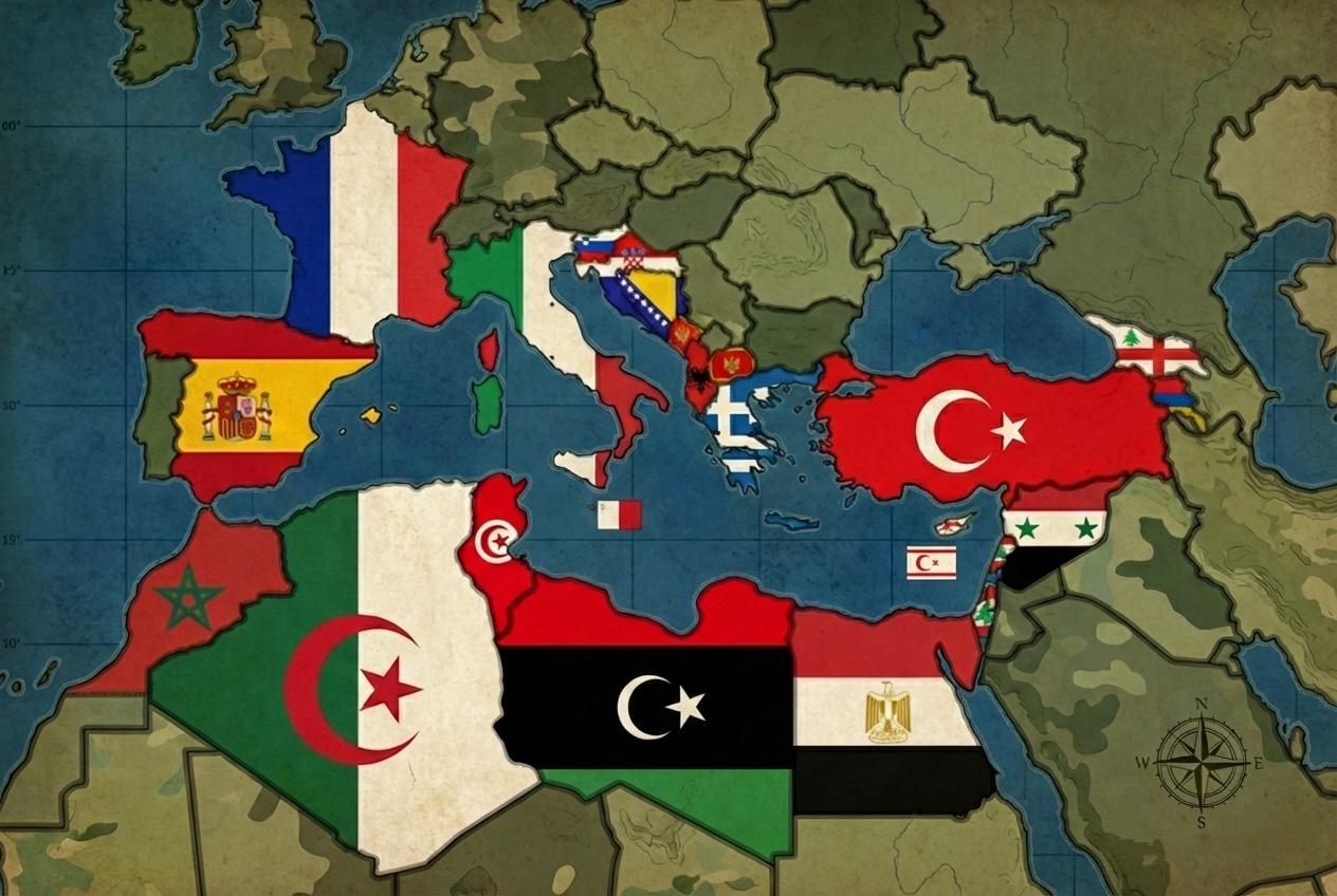 Fransa İtalya Slovenya Hırvatistan Arnavutluk Yunanistan Türkiye Suriye Lübnan İsrail Mısır Libya Tunus Cezayir Fas İspanya